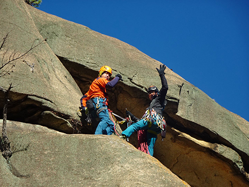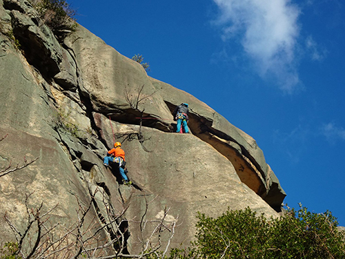 その後、モンキーフリップ(3P)を2パーティに分かれて登攀。