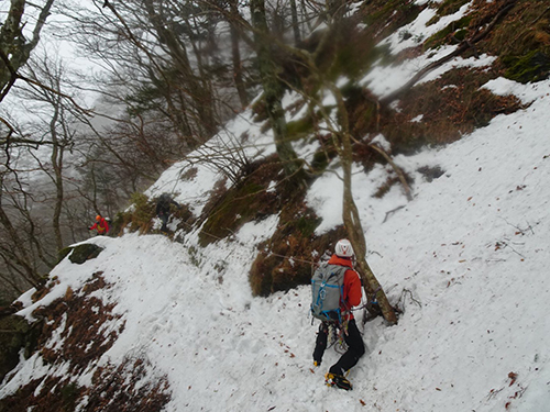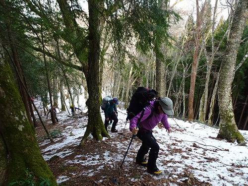 積雪量が圧倒的に少なく登山道は氷化しているコンデション、なるべくアイゼンを付けない歩行を心がけました。